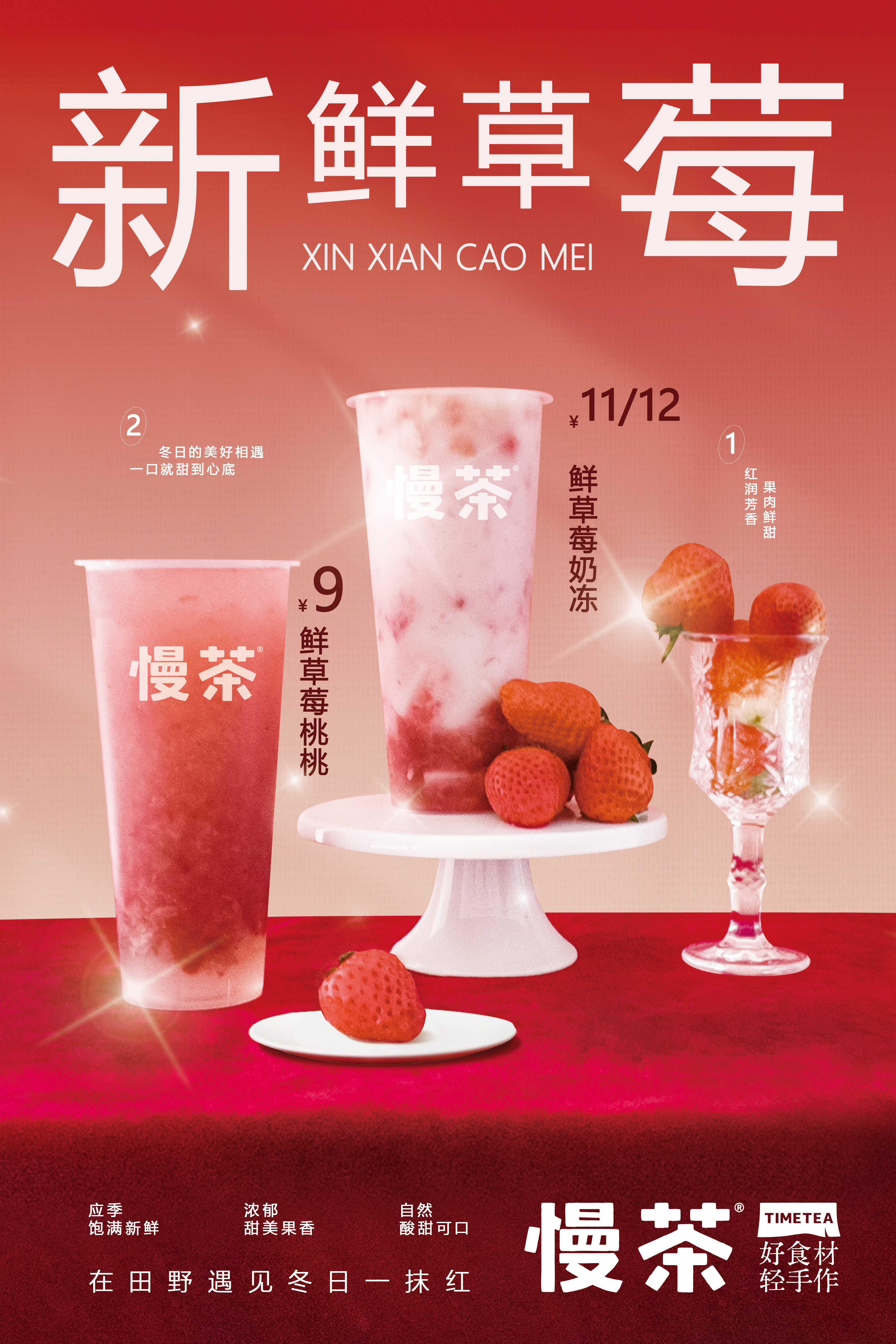 按時(shí)令上新的冬日草莓系列,在我心中的一直有著無(wú)法超越的地位。每年的回歸上新也會(huì)根據(jù)大家的評(píng)價(jià),在配方上細(xì)微調(diào)整,復(fù)配不同的水果,增加果肉含量,改換茶底或者茶湯比例,希望能讓口感更加豐富。
